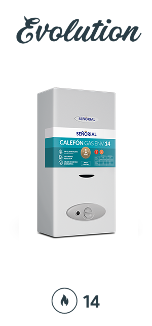 Calefón a gas modelo C-14GN, sin llama piloto, eficiente y seguro. Certificado IGA. Máxima categoría. ¡Compra calidad y seguridad!