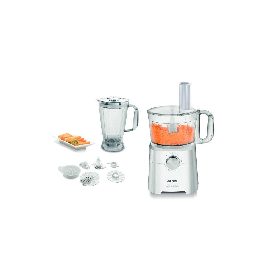 Accesorios intercambiables: cuchilla acero inoxidable, amasador, rebanador, rallador, procesador de verduras, exprimidor y emulsionador